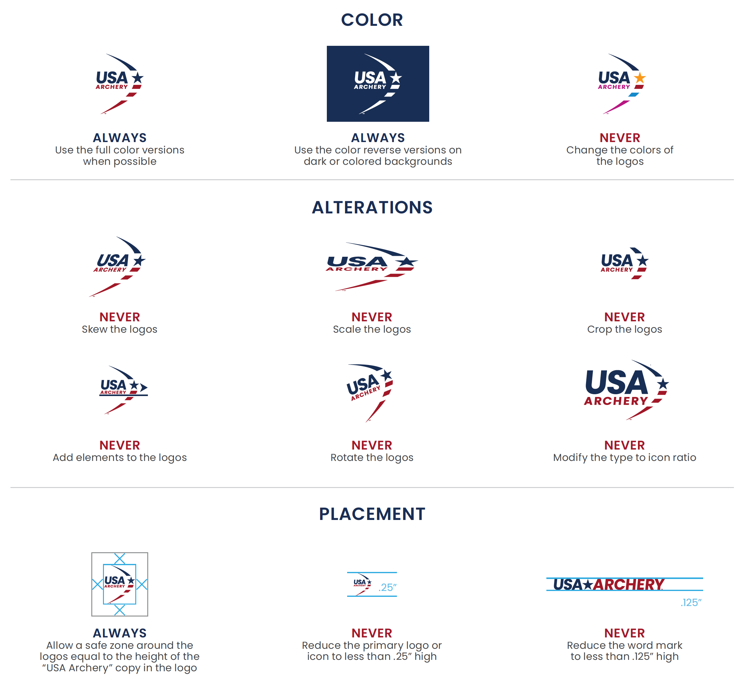 When working with the USA Archery family of logos, adherence to these guidelines is essential to preserving the integrity and strength of our brand.